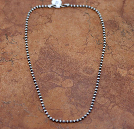 20" 4mm Navajo Pearl Silver Beaded Necklace