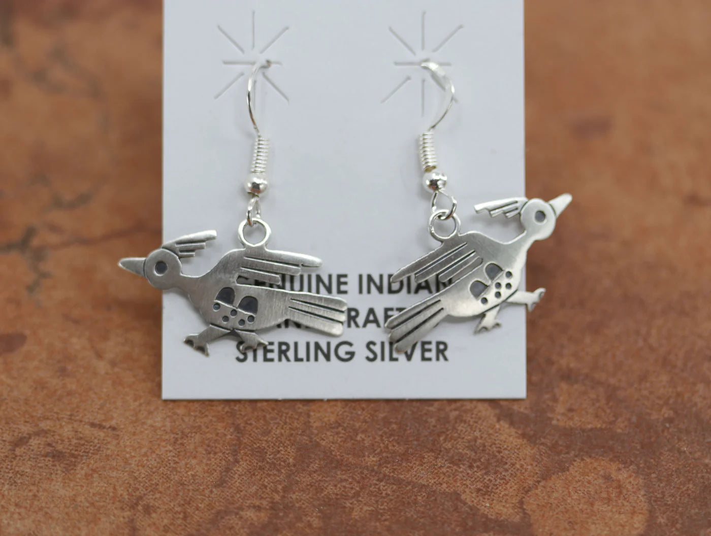 Sterling Silver Navajo Pink Created Opal Feather Earrings