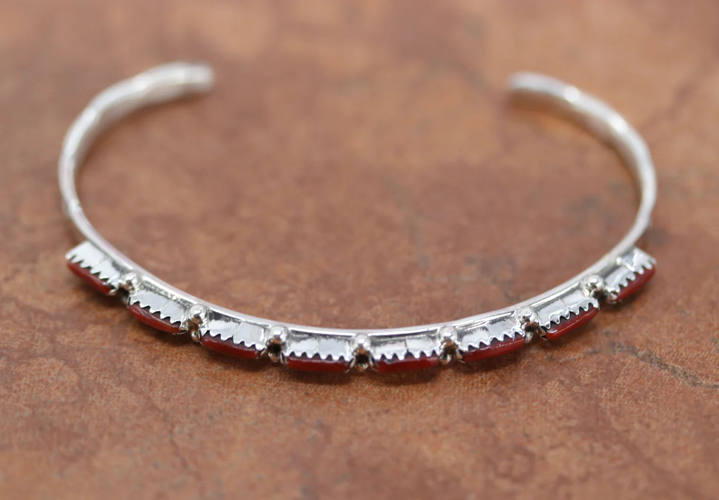 Sterling Silver Zuni Turquoise Coral Needlepoint Earrings