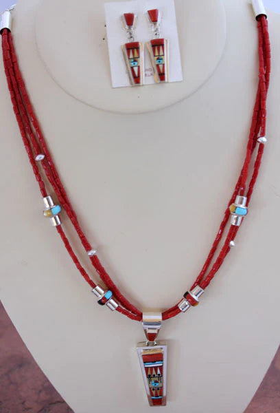 Sterling Silver Zuni Necklace Earrings Set by RP Edaakie