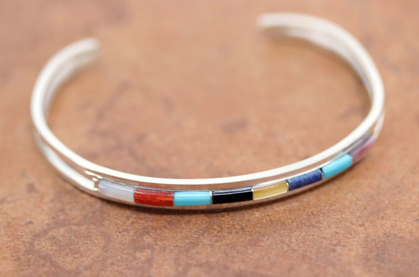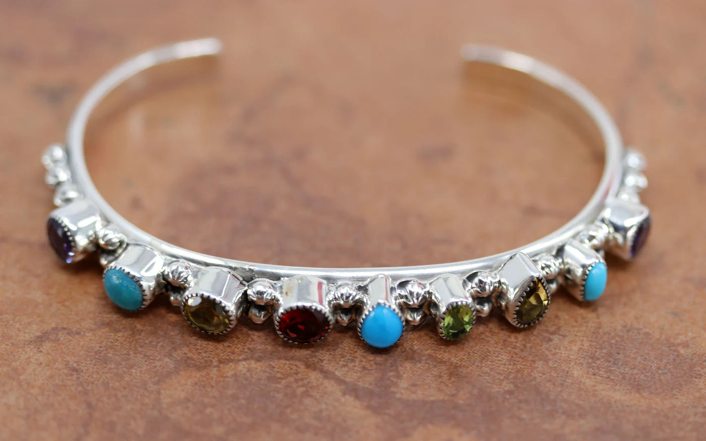 Sterling Silver Navajo Turquoise Coral Nugget Bracelet