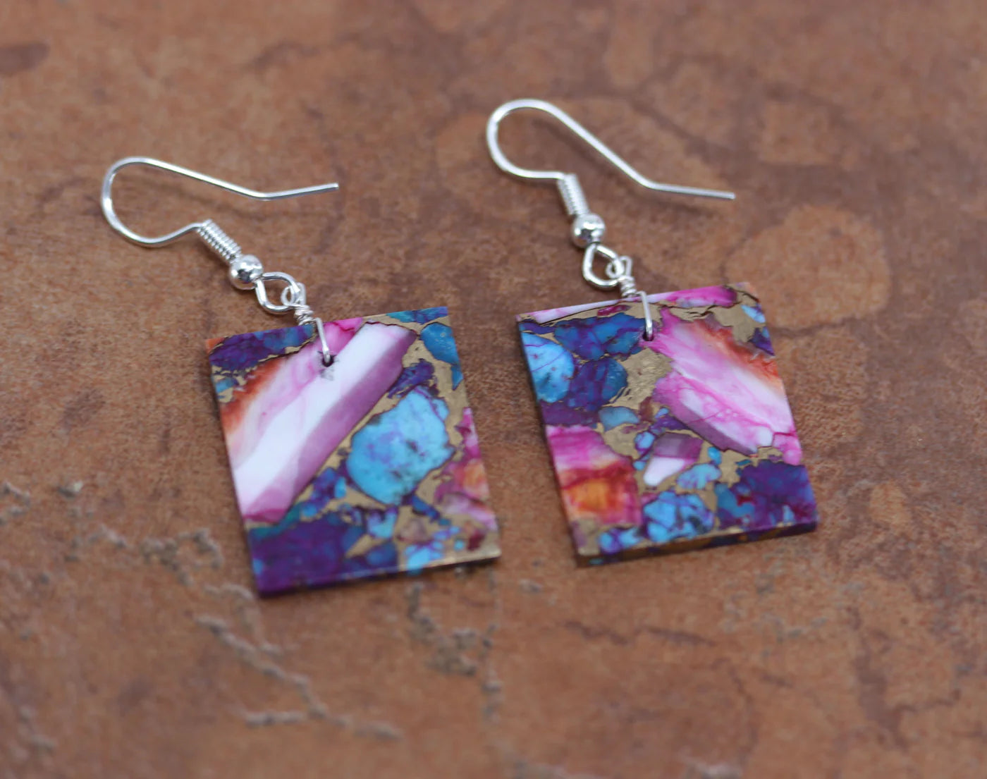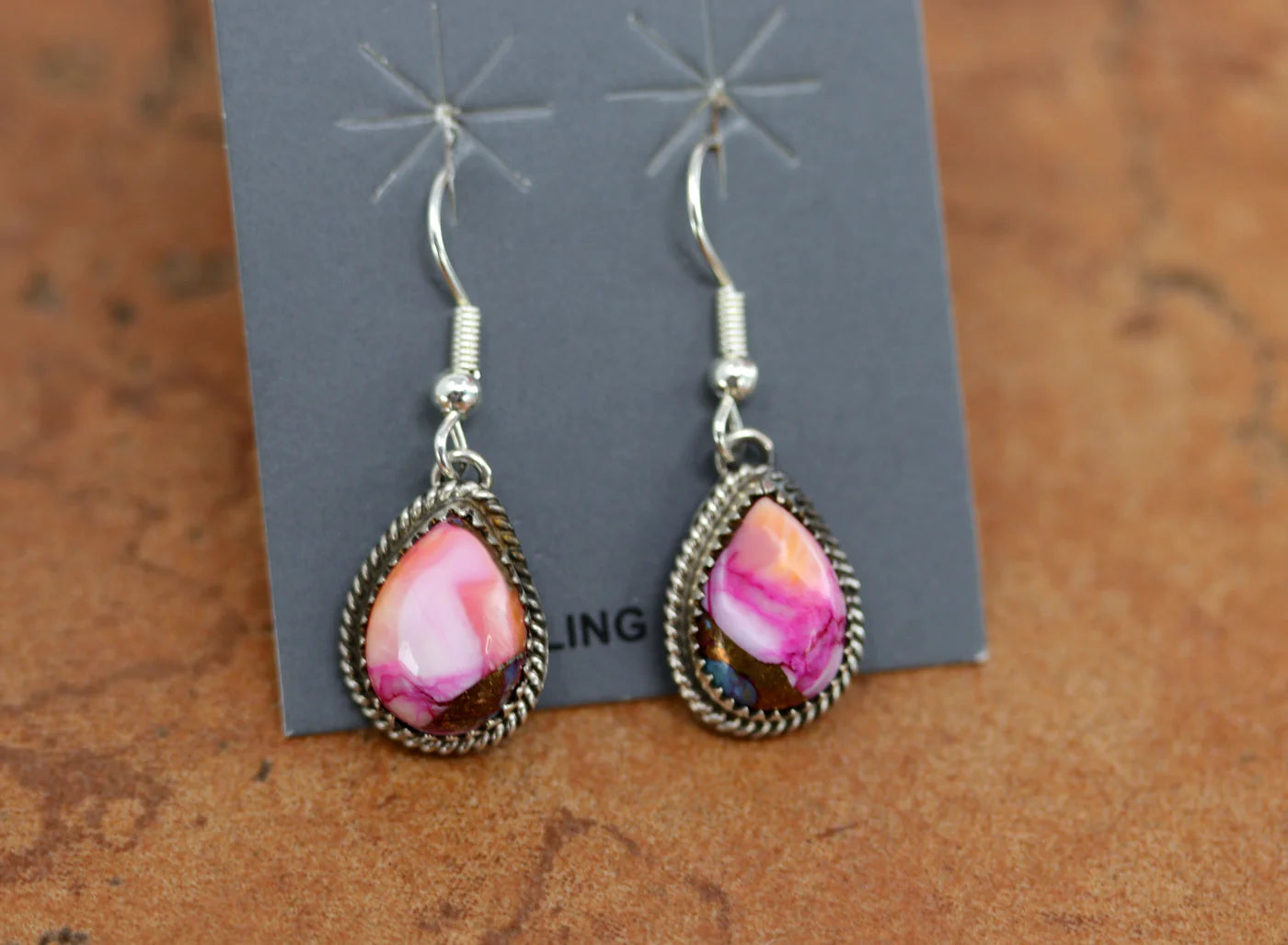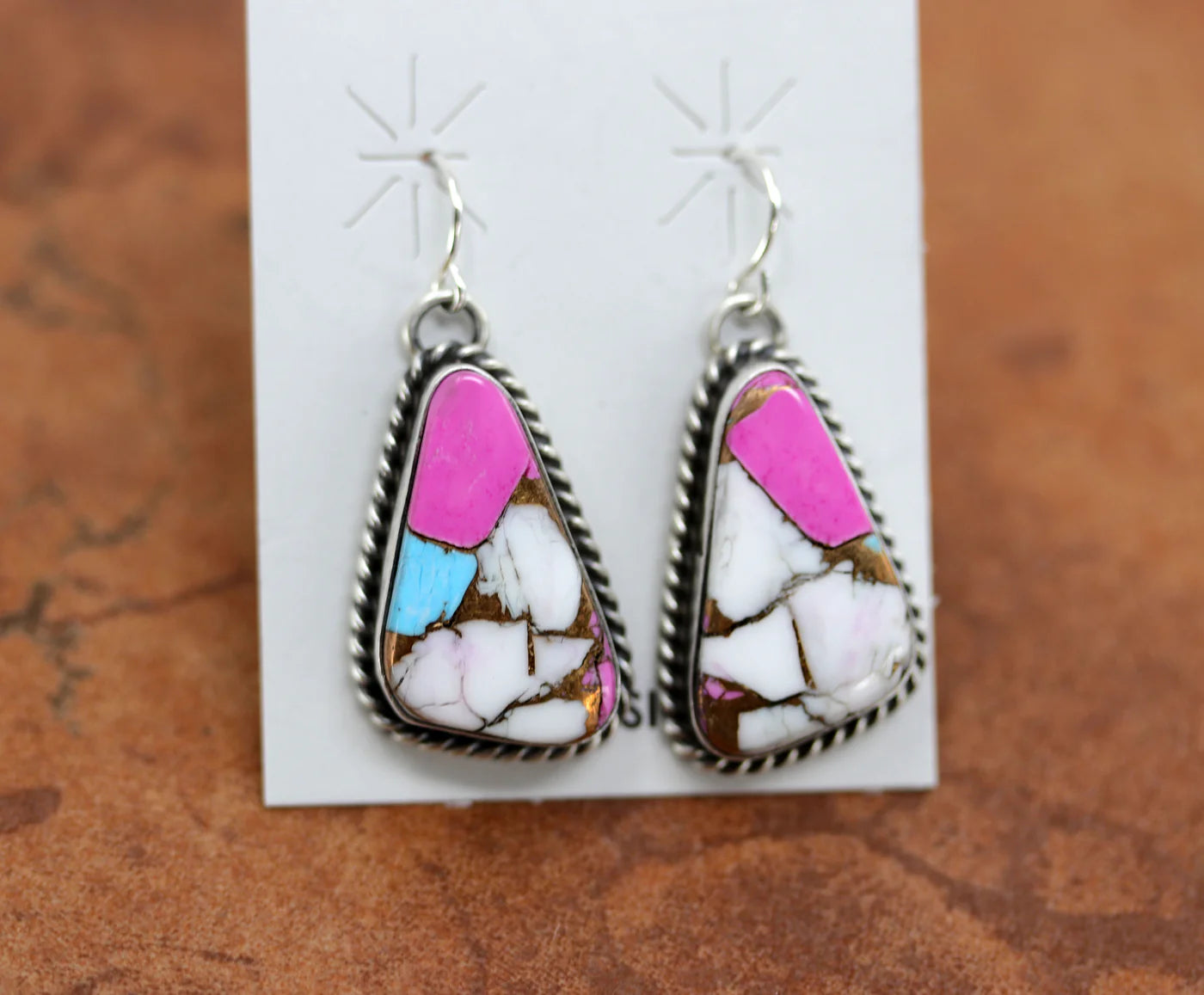 Sterling Silver Navajo Cotton Candy Dahlia Turquoise Earrings