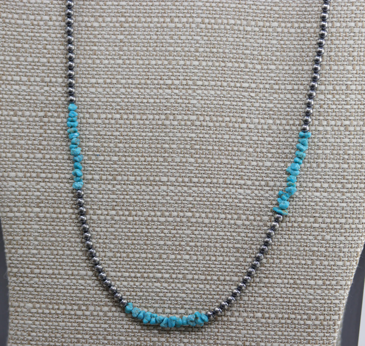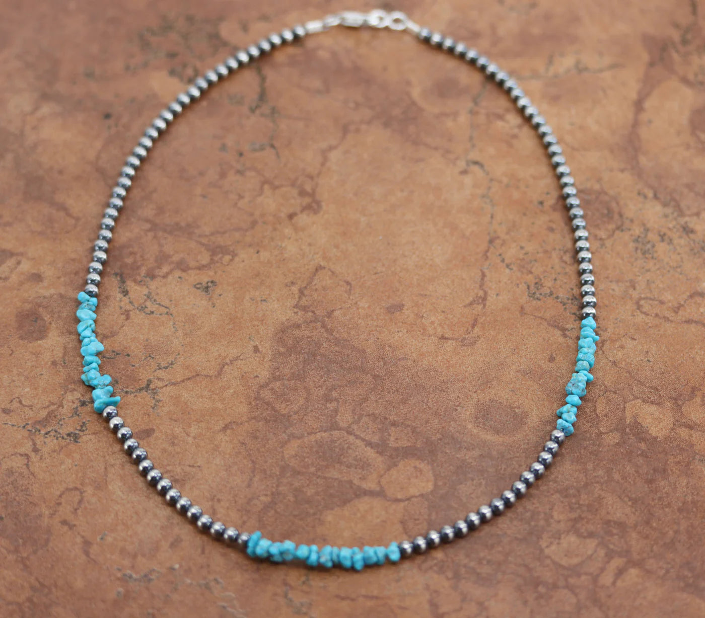 Sterling Silver 20" 4 mm Navajo Pearl Heishi Turquoise Necklace