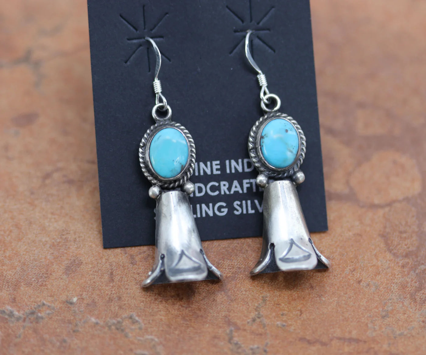 Sterling Silver Navajo Turquoise Squash Blossom Earrings