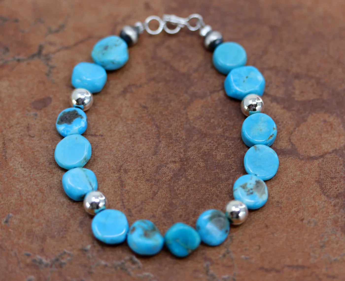 Sterling Silver Navajo Pearl Turquoise Nugget Bracelet