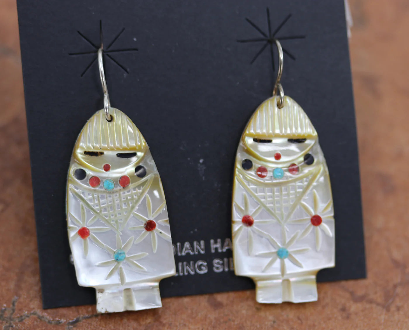 Sterling Silver Zuni Mother of Pearl Corn Maiden Earrings