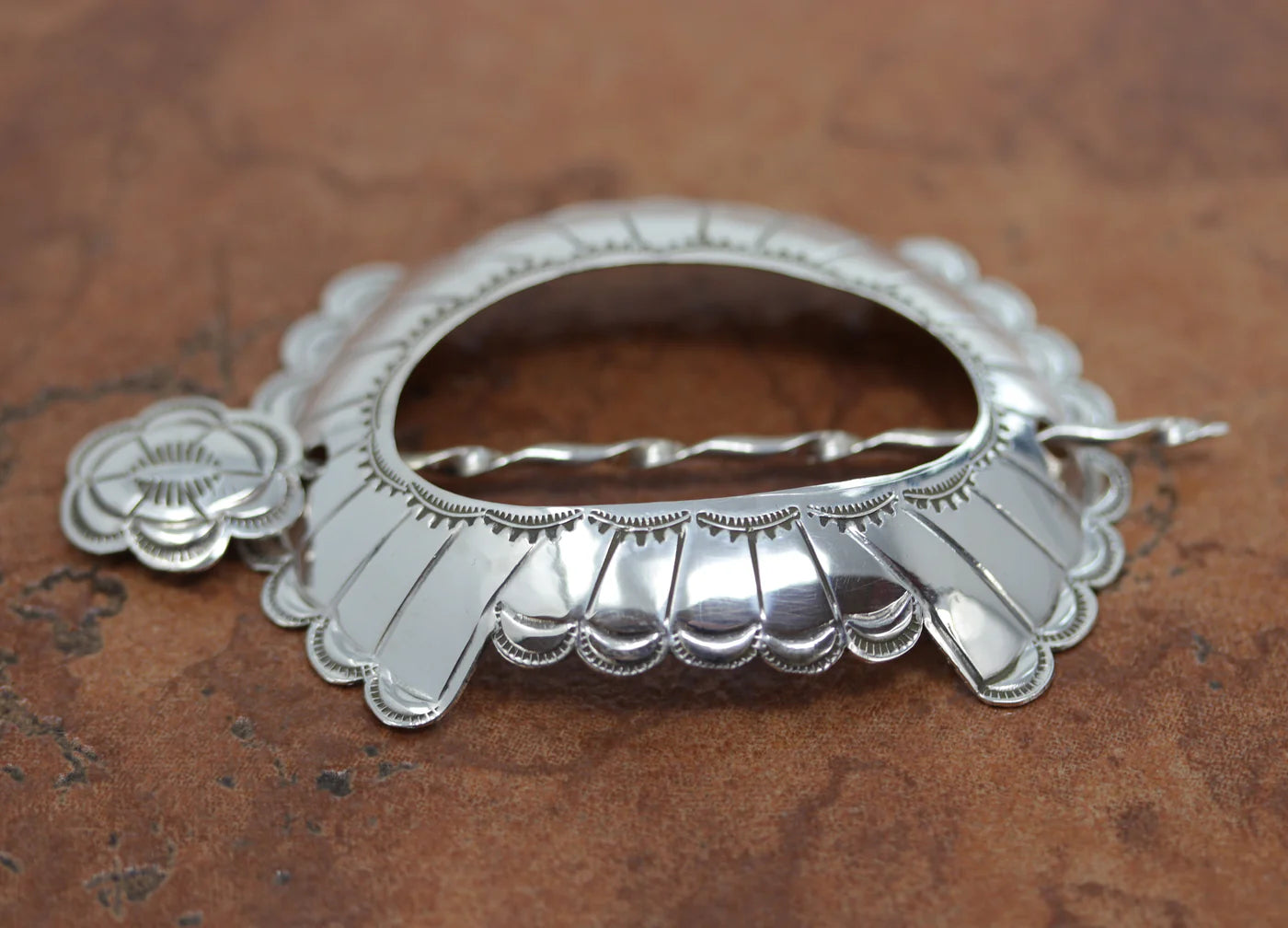 Sterling Silver Navajo Bear Paw Onyx Hair Tie