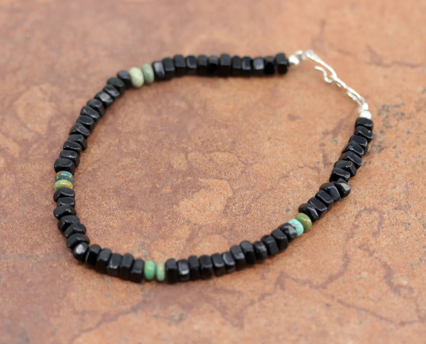 Sterling Silver Navajo Onyx Turquoise Nugget Bracelet