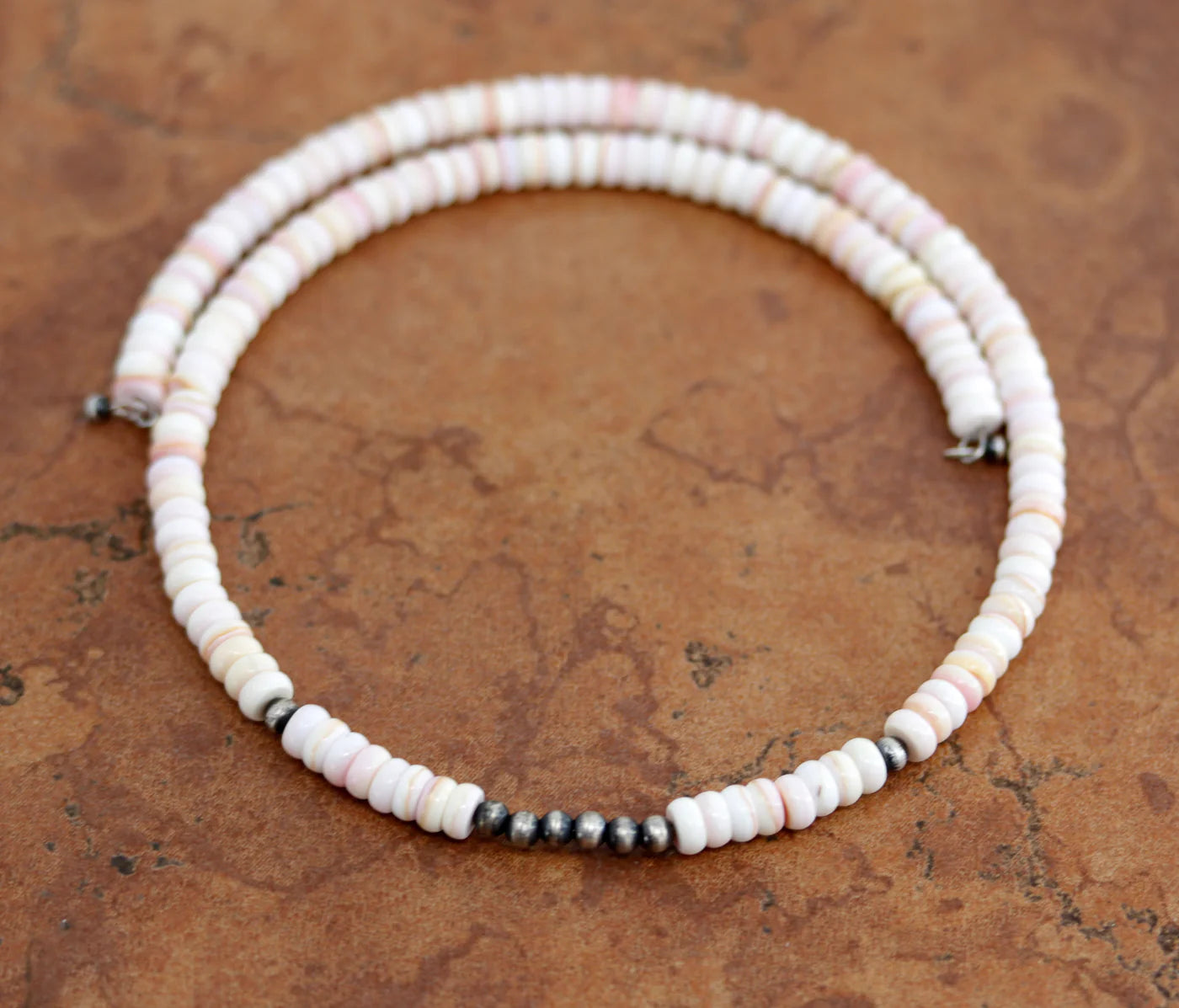 Sterling Silver Navajo Heishi Pink Conch Memory Wire Choker Necklace