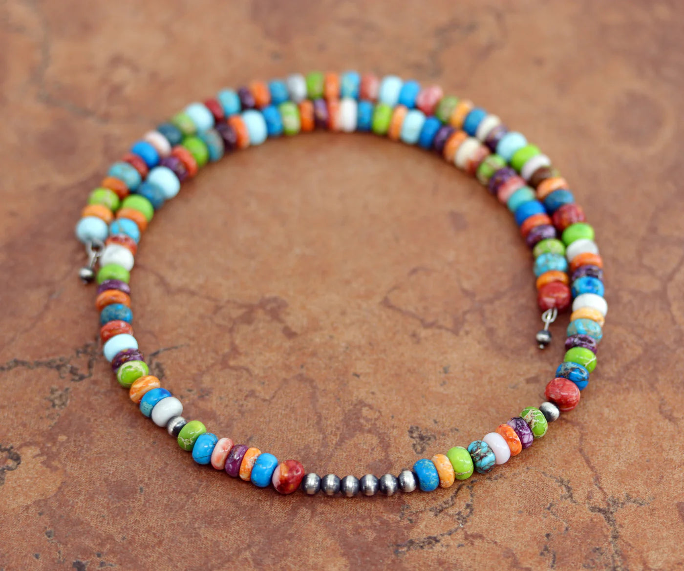 Sterling SIlver Navajo Multi-Stone Memory Wire Choker Necklace