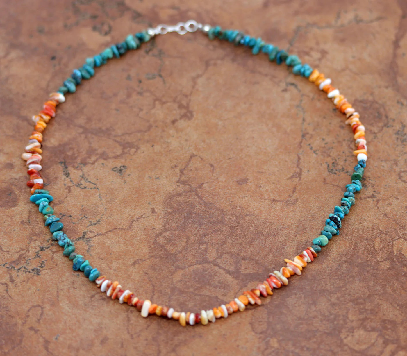 Navajo Spiny Oyster Turquoise Heishi Nugget Necklace