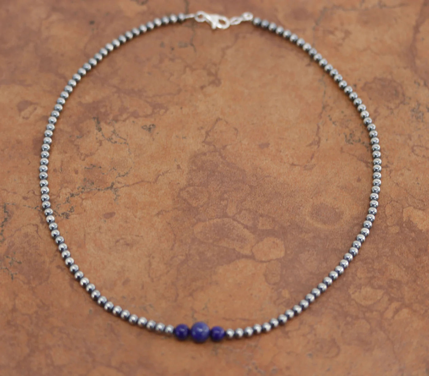 Sterling Silver Desert Pearl 20" 4mm Beaded Lapis Necklace