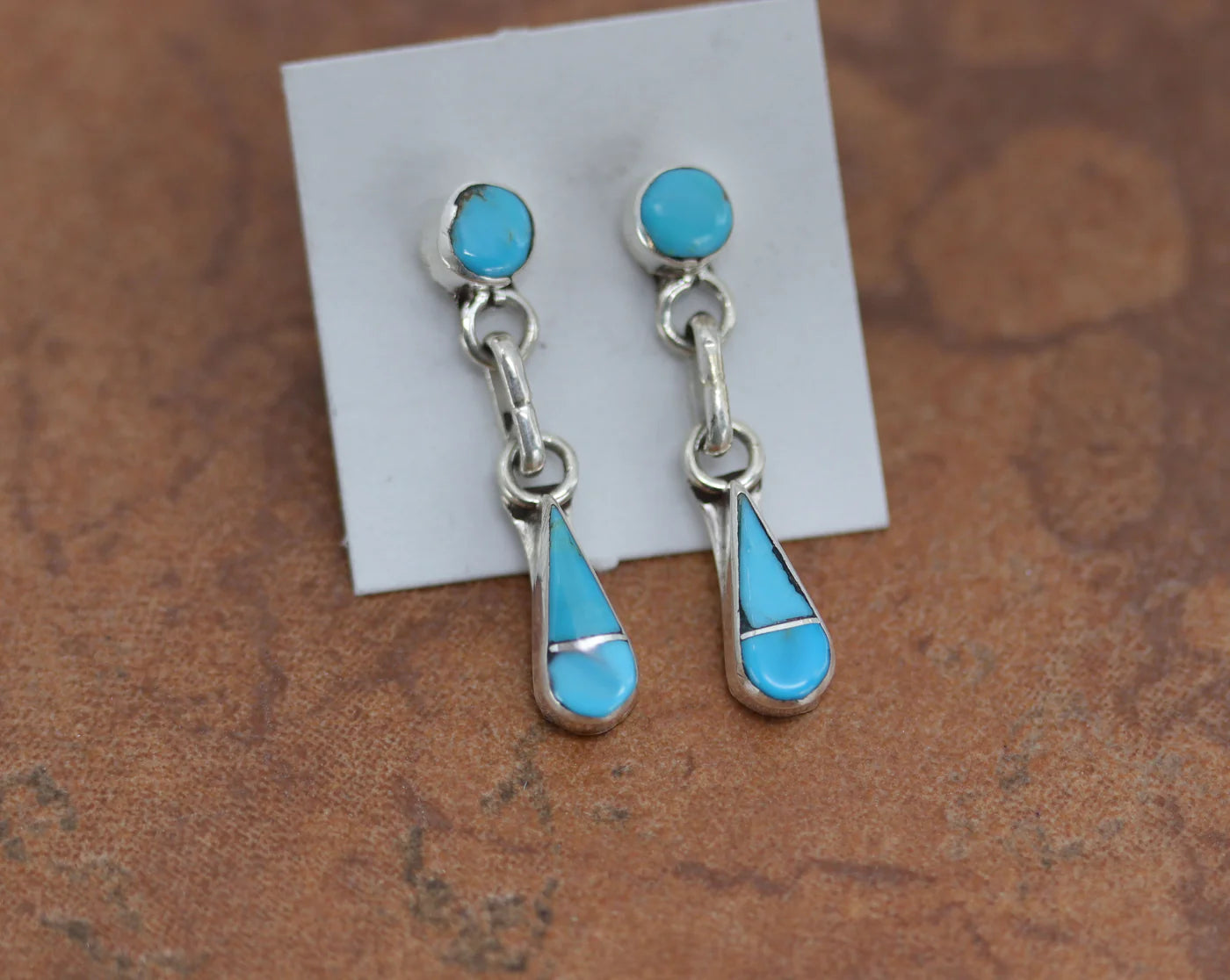 Sterling Silver Zuni Turquoise Tear Drop Earrings