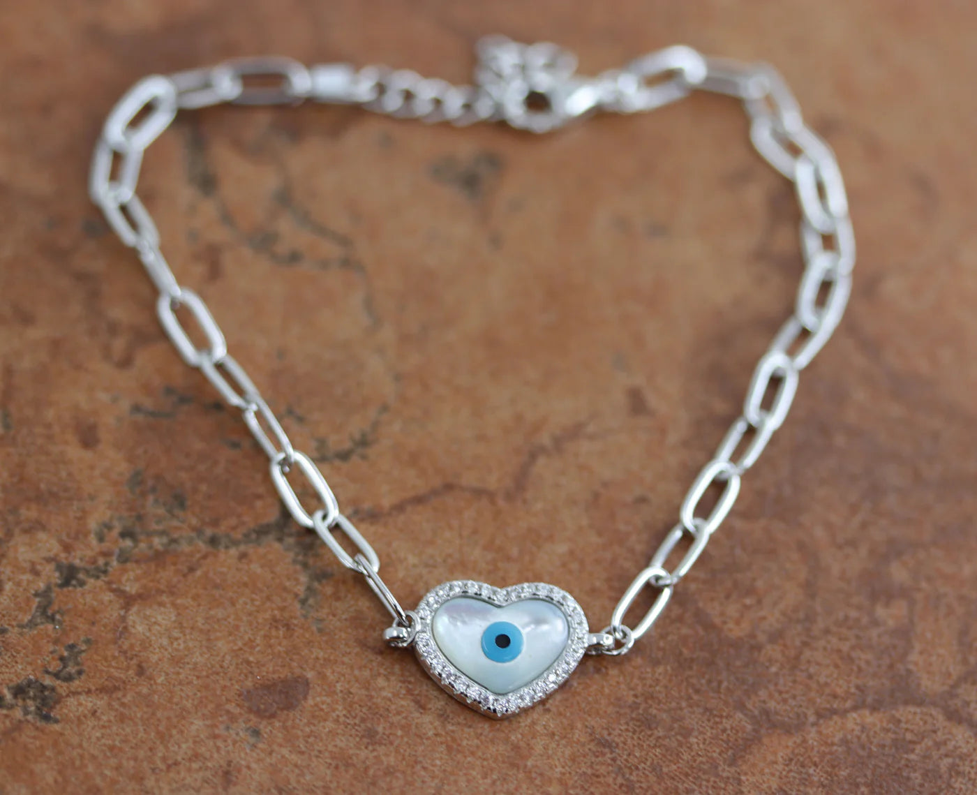 Sterling Silver Blue Evil Eye Paper Clip Bracelet