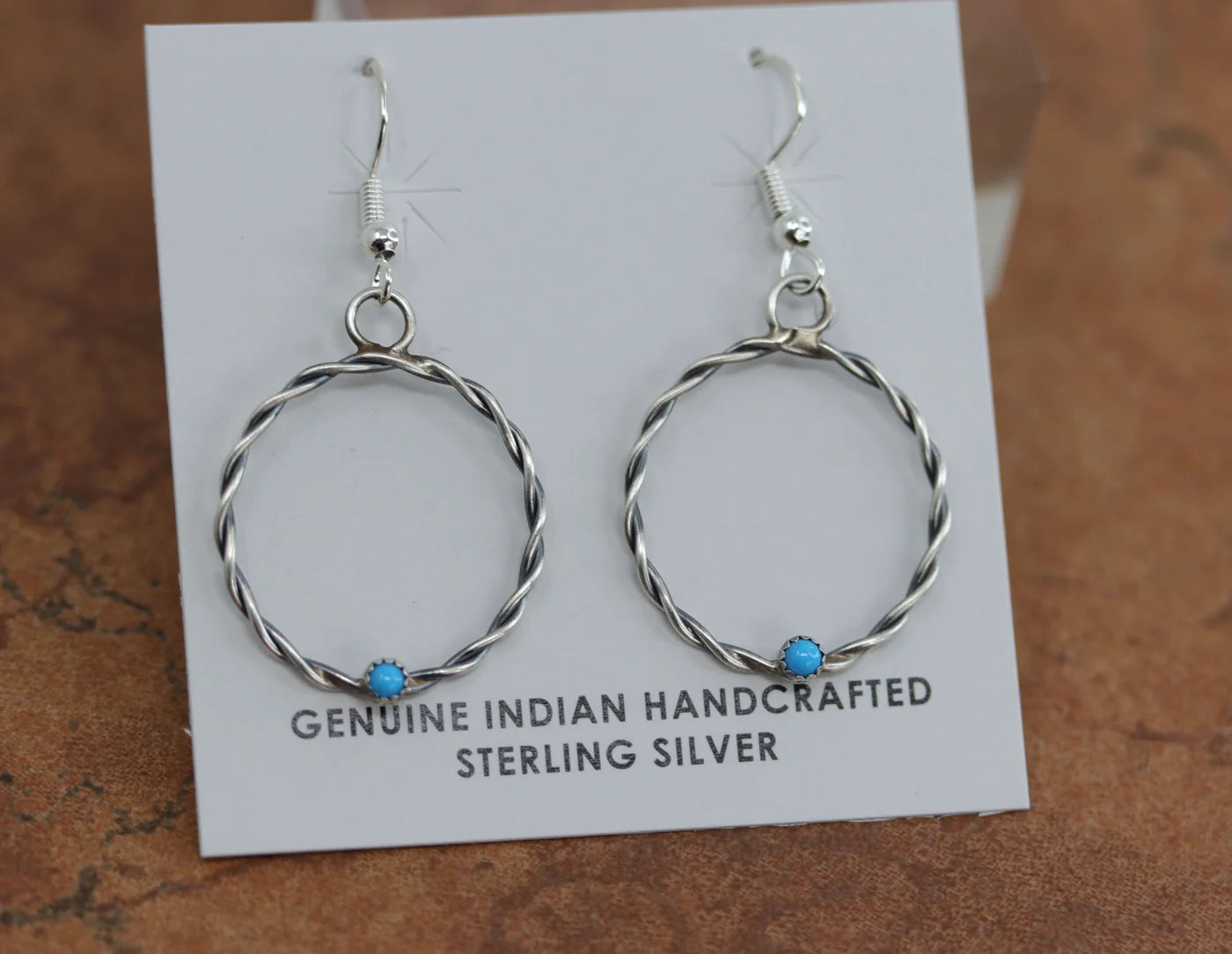 Sterling Silver Navajo Turquoise Circle of Life Earrings