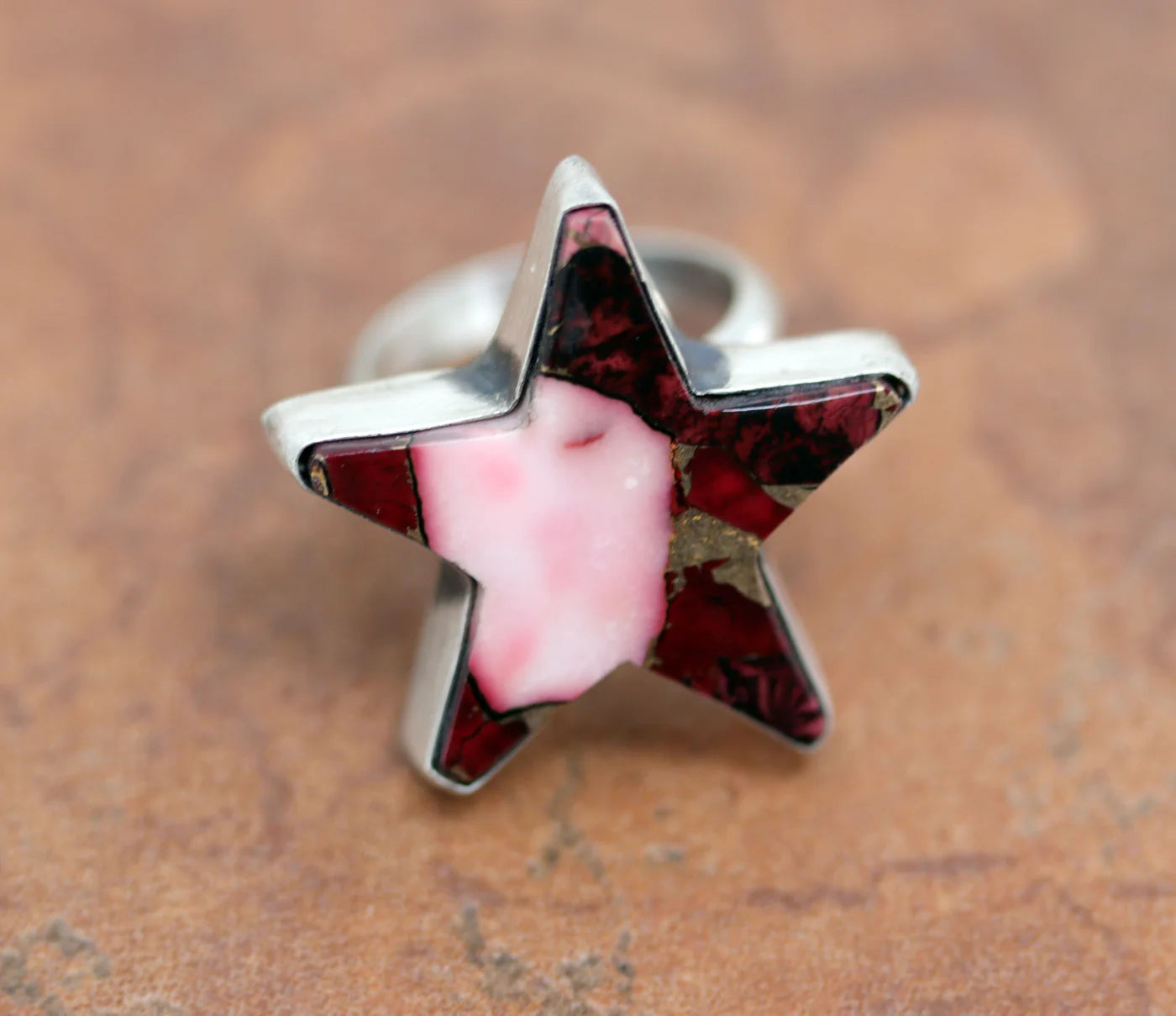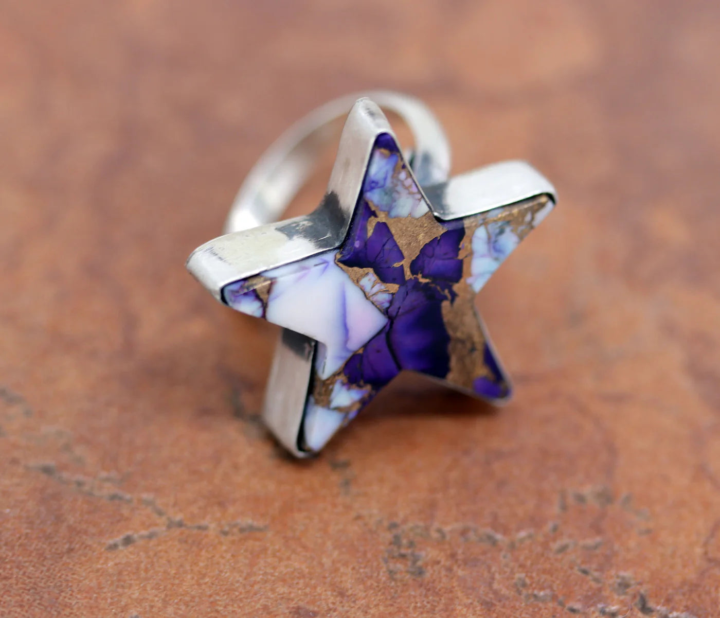 Sterling Silver Navajo Lavender Dalhia Turquoise Star Ring Size 6-8