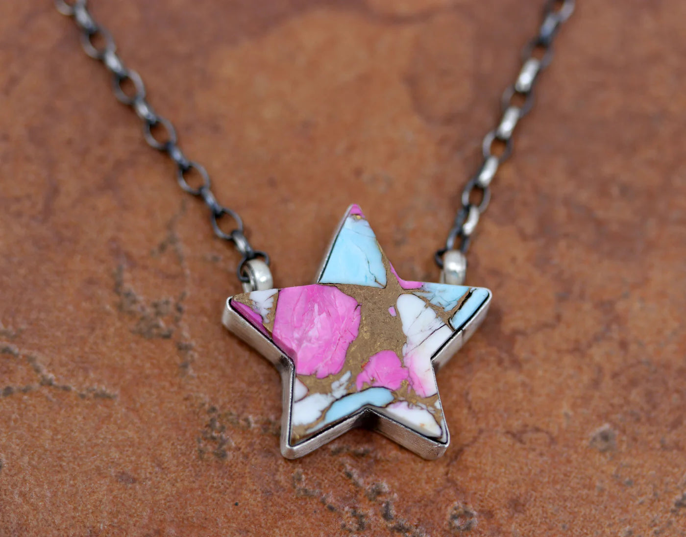 Sterling Silver Navajo Cotton Candy Dahlia Turquoise Star Necklace