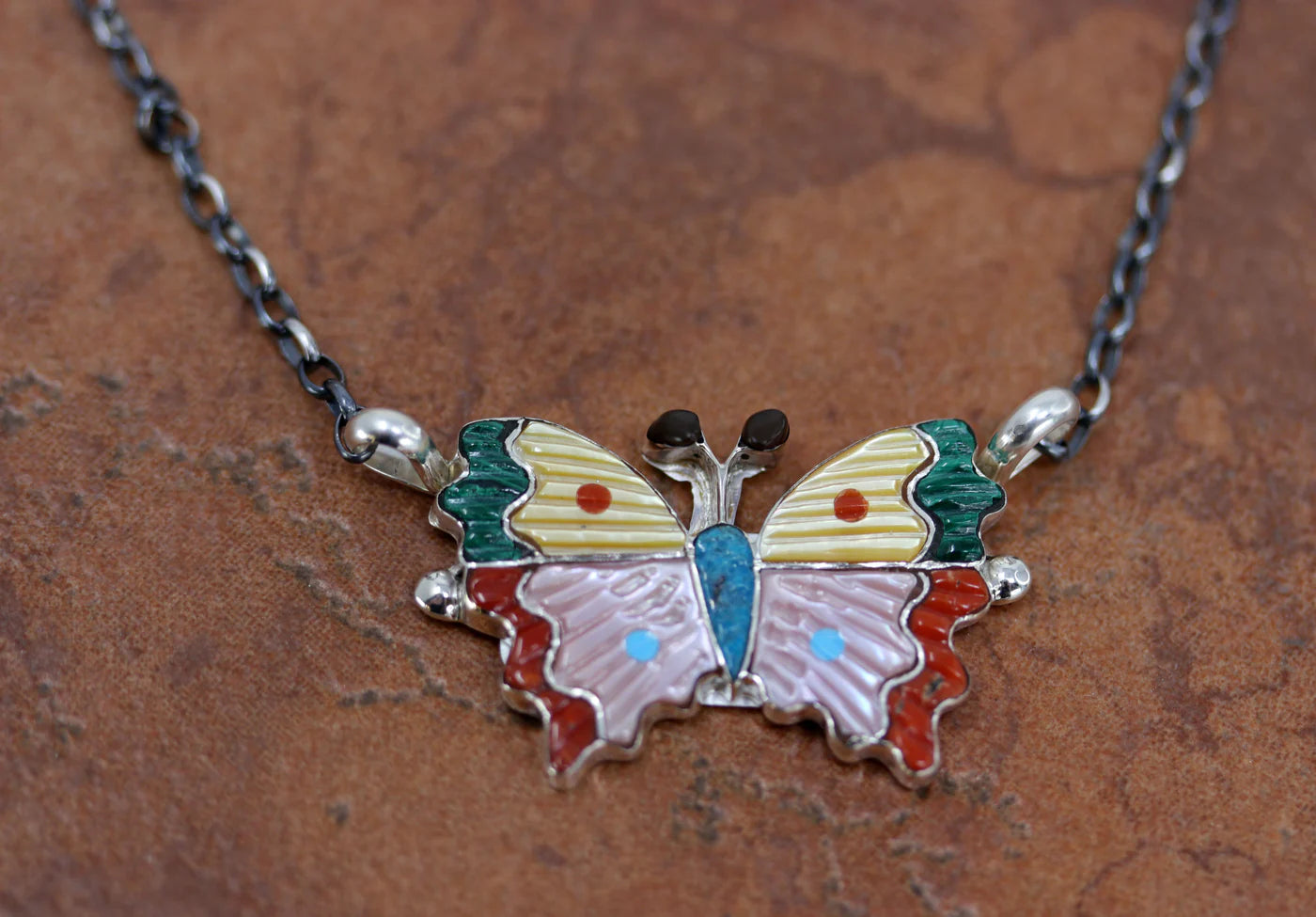 Sterling Silver Zuni Multi Stone Butterfly Necklace