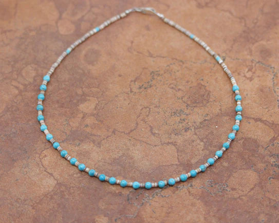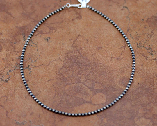 14" 3mm Navajo Pearl Silver Beaded Choker Necklace