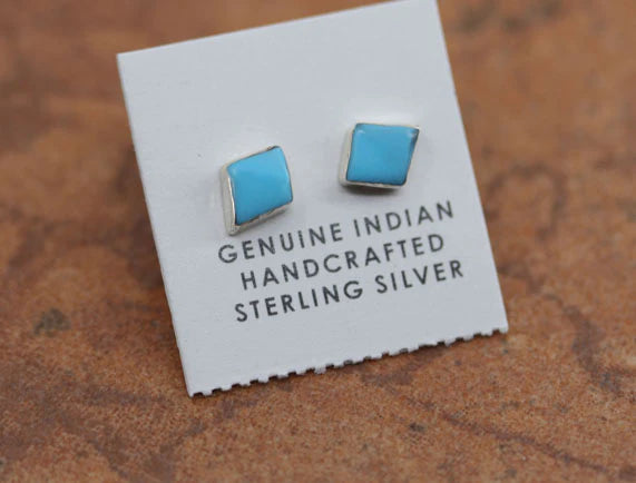 Sterling Silver Zuni Turquoise Triangle Stud Earrings