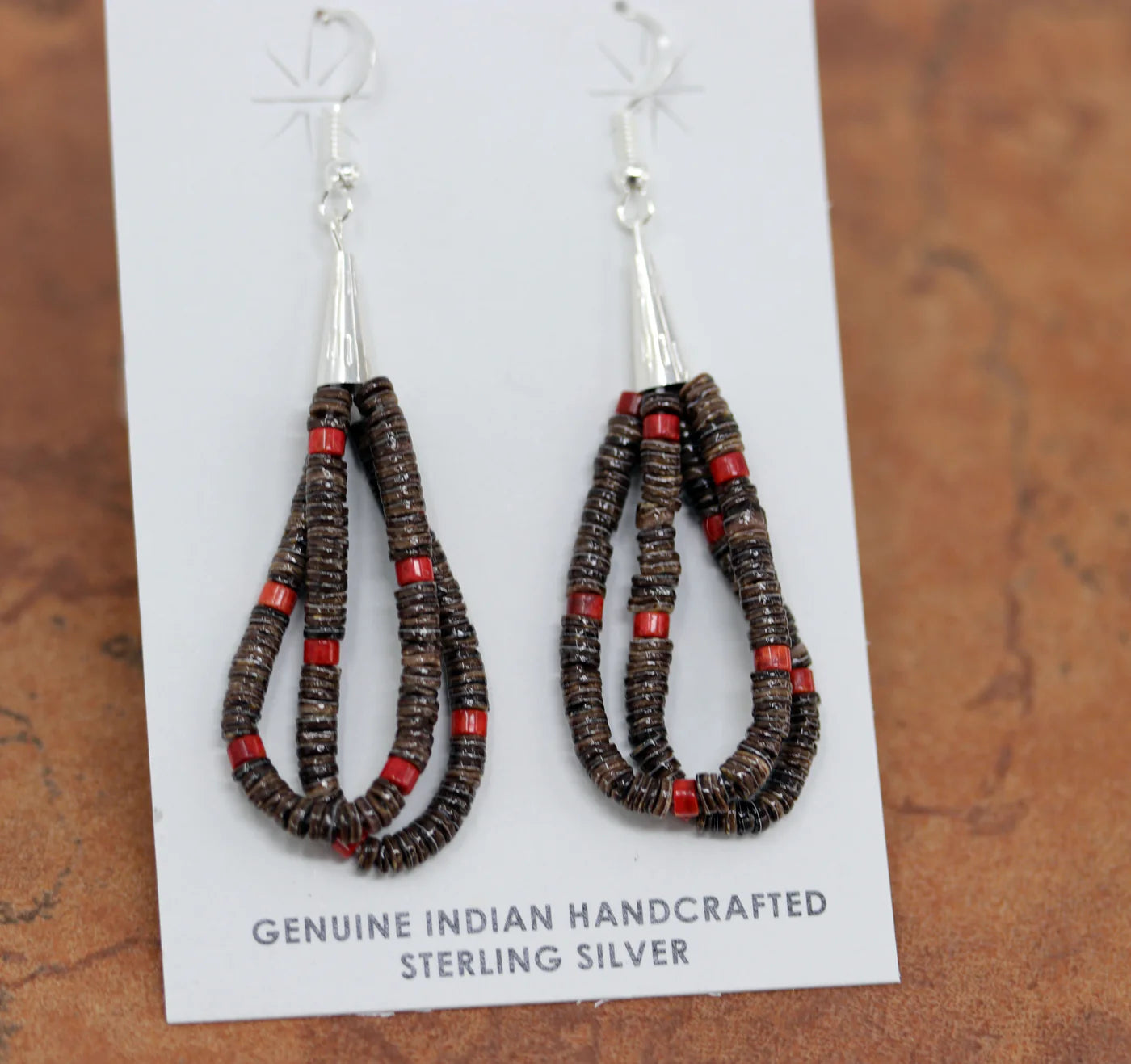 Sterling Silver Navajo Coral Bear Paw Earrings