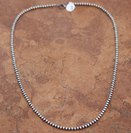 24" 4mm Navajo Pearl Silver Beaded Necklace