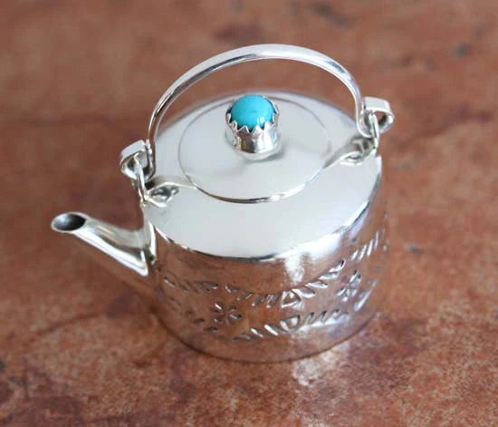 Sterling Silver Navajo Turquoise Tea Pot Pendant