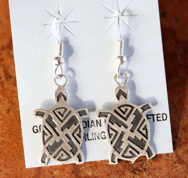 Sterling Silver Navajo Turtle Earrings by Stanley Gene