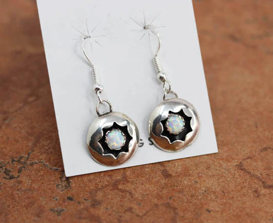 Sterling Silver Navajo Created Opal Bear Paw Earrings