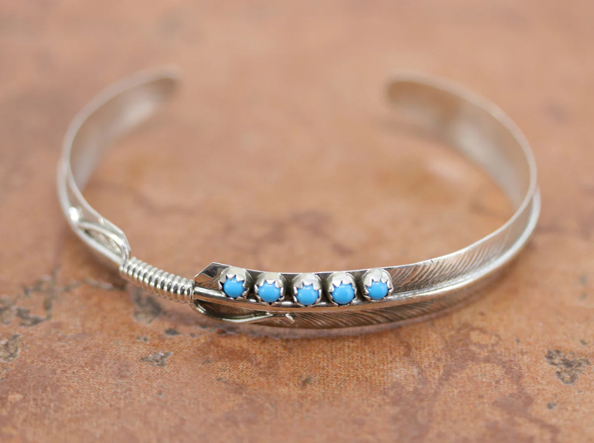 Sterling Silver Navajo Turquoise Feather Bracelet