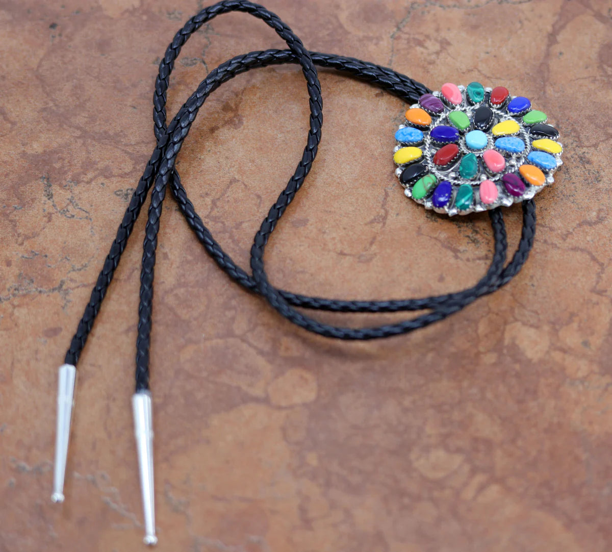 Sterling Silver Navajo Multi-Stone Cluster Bolo Tie