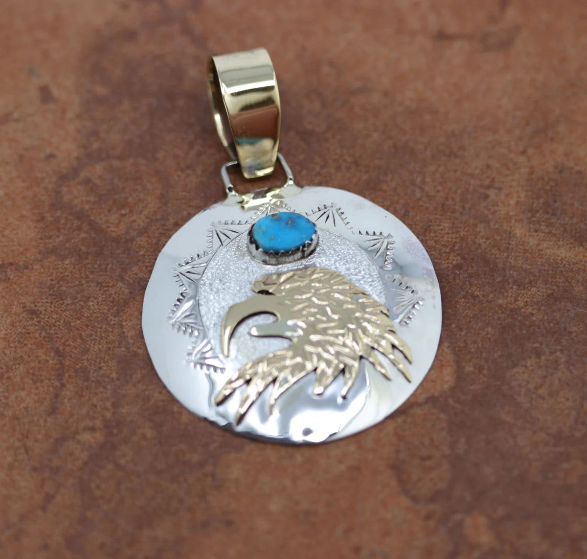 Sterling Silver Navajo Gold Turquoise Eagle Pendant