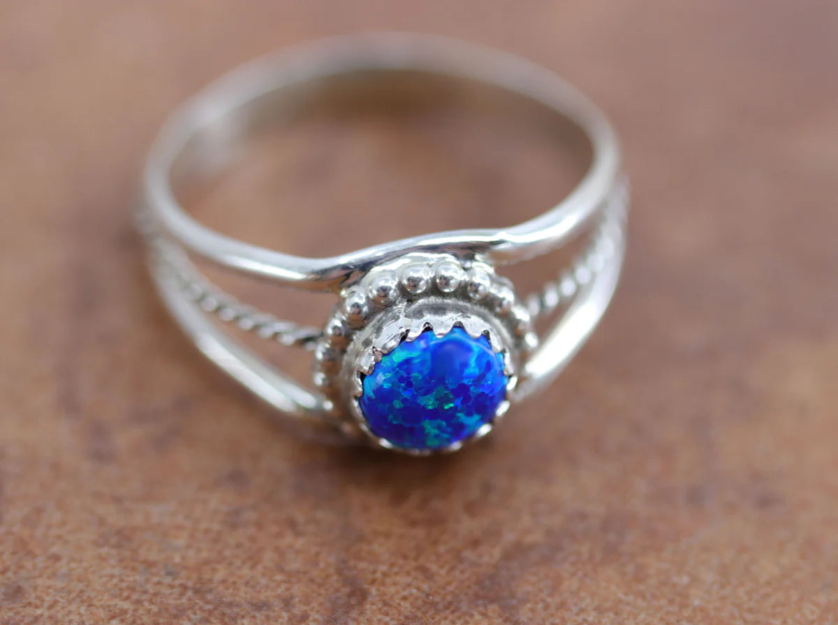 Sterling Silver Navajo Created Opal Ring Size 7