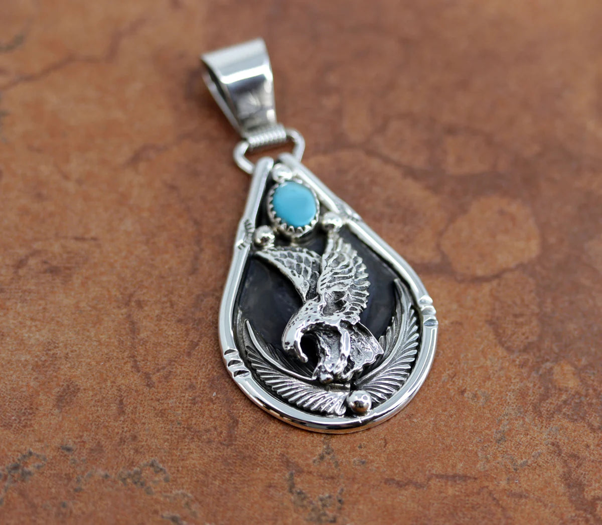 Sterling Silver Navajo Turquoise Eagle Pendant