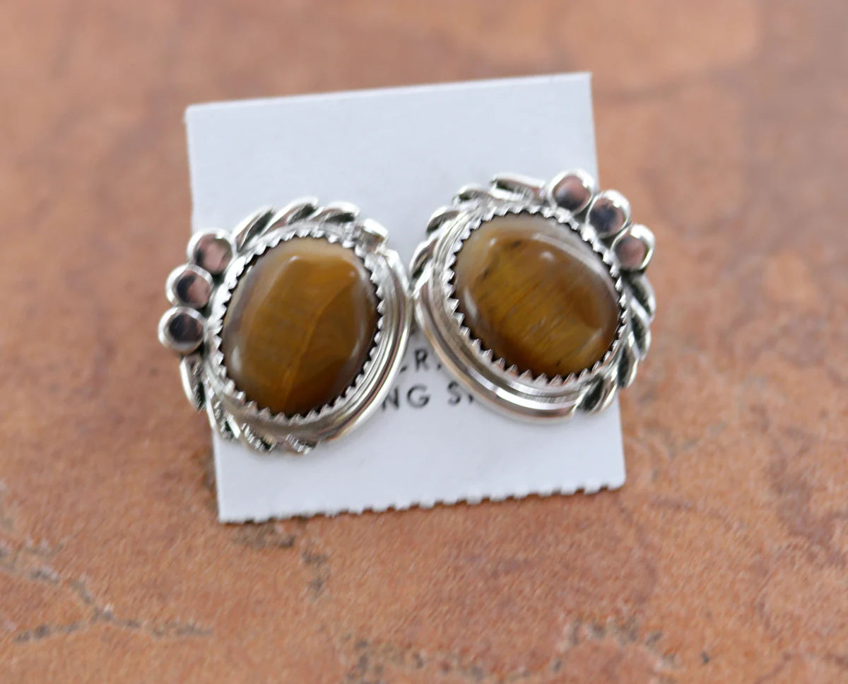 Sterling Silver Navajo Tiger Eye Earrings by Cadman