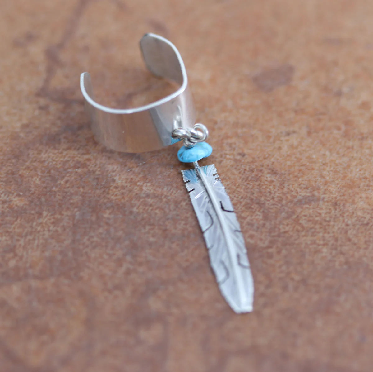 Sterling Silver Navajo Turquoise Feather Ear Cuff