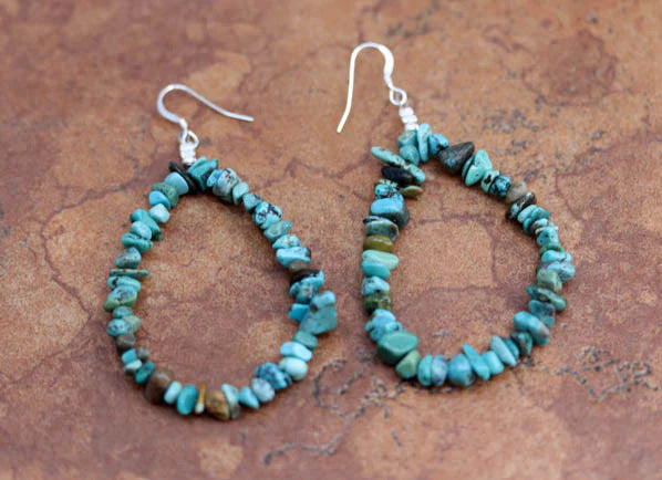 Sterling Silver Navajo Turquoise Hoop Earrings