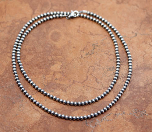 26" 4mm Navajo Pearl Silver Beaded Necklace Chain