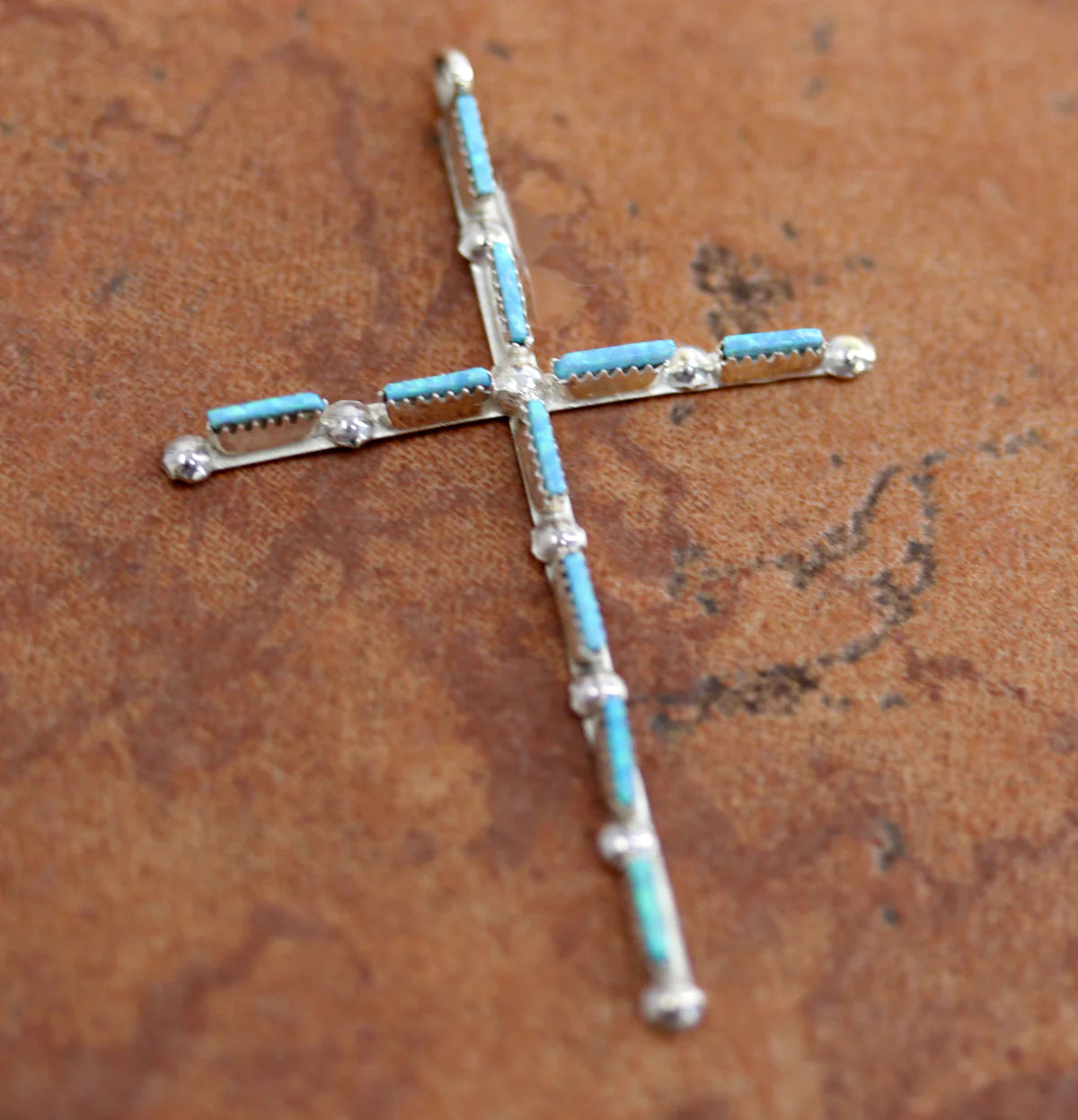 Sterling Silver Zuni Turquoise Hoop Earrings