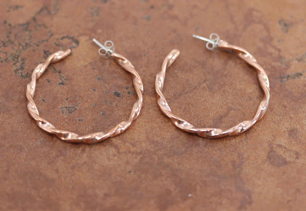 Sterling Silver Copper Navajo Twist Wire Hoop Earrings