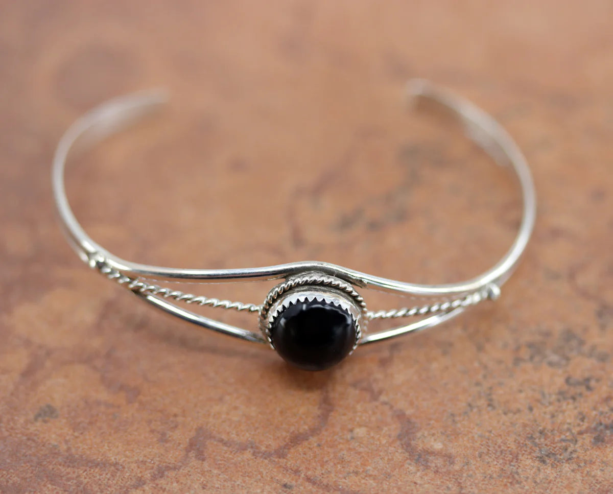 Sterling Silver Navajo Onyx Bear Paw Barrette