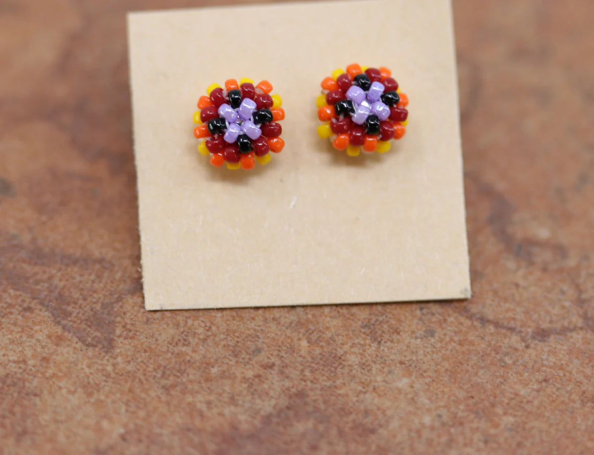Sterling Silver Zuni Coral Cluster Stud Earrings