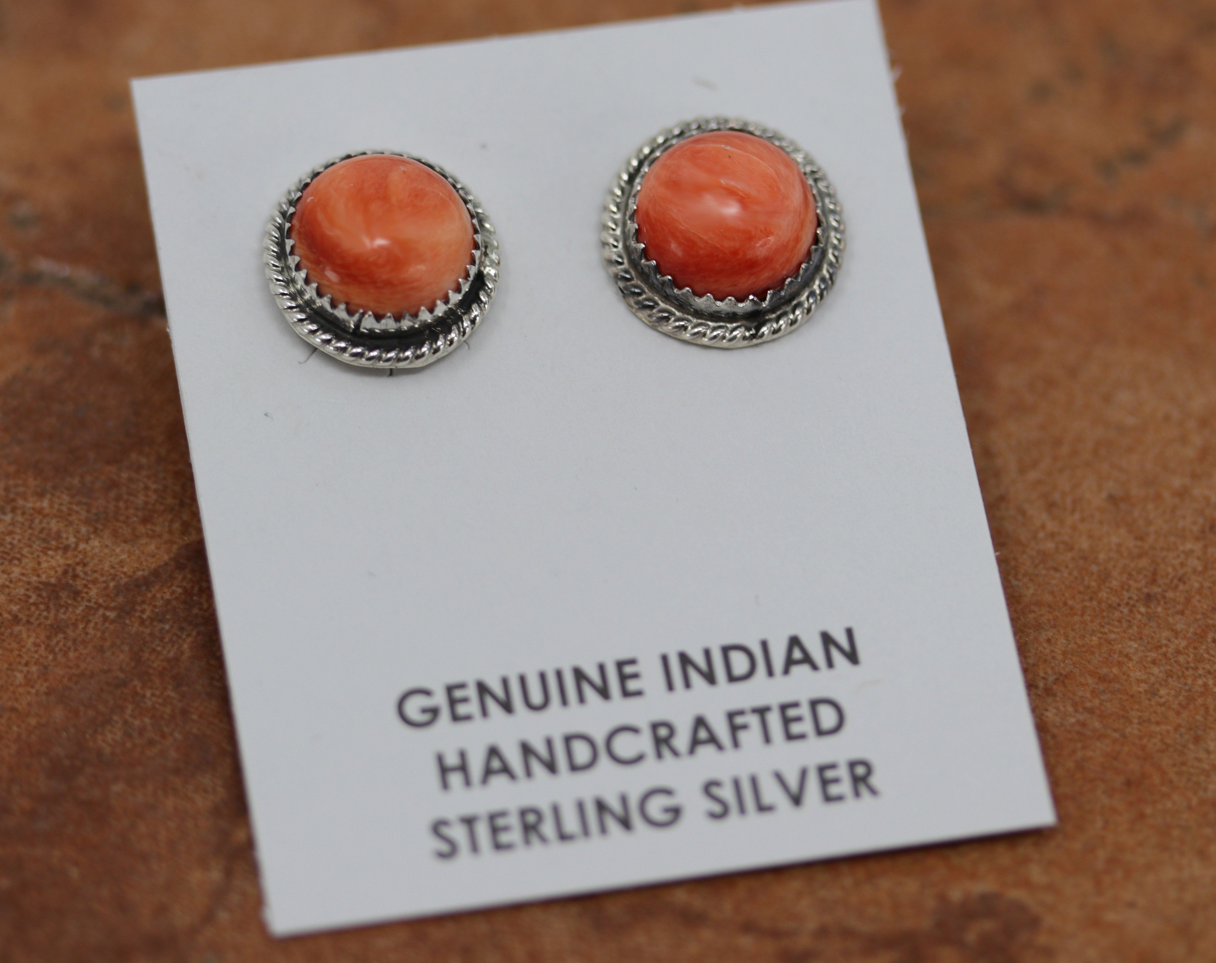 Sterling Silver Navajo Spiny Oyster Stud Earrings
