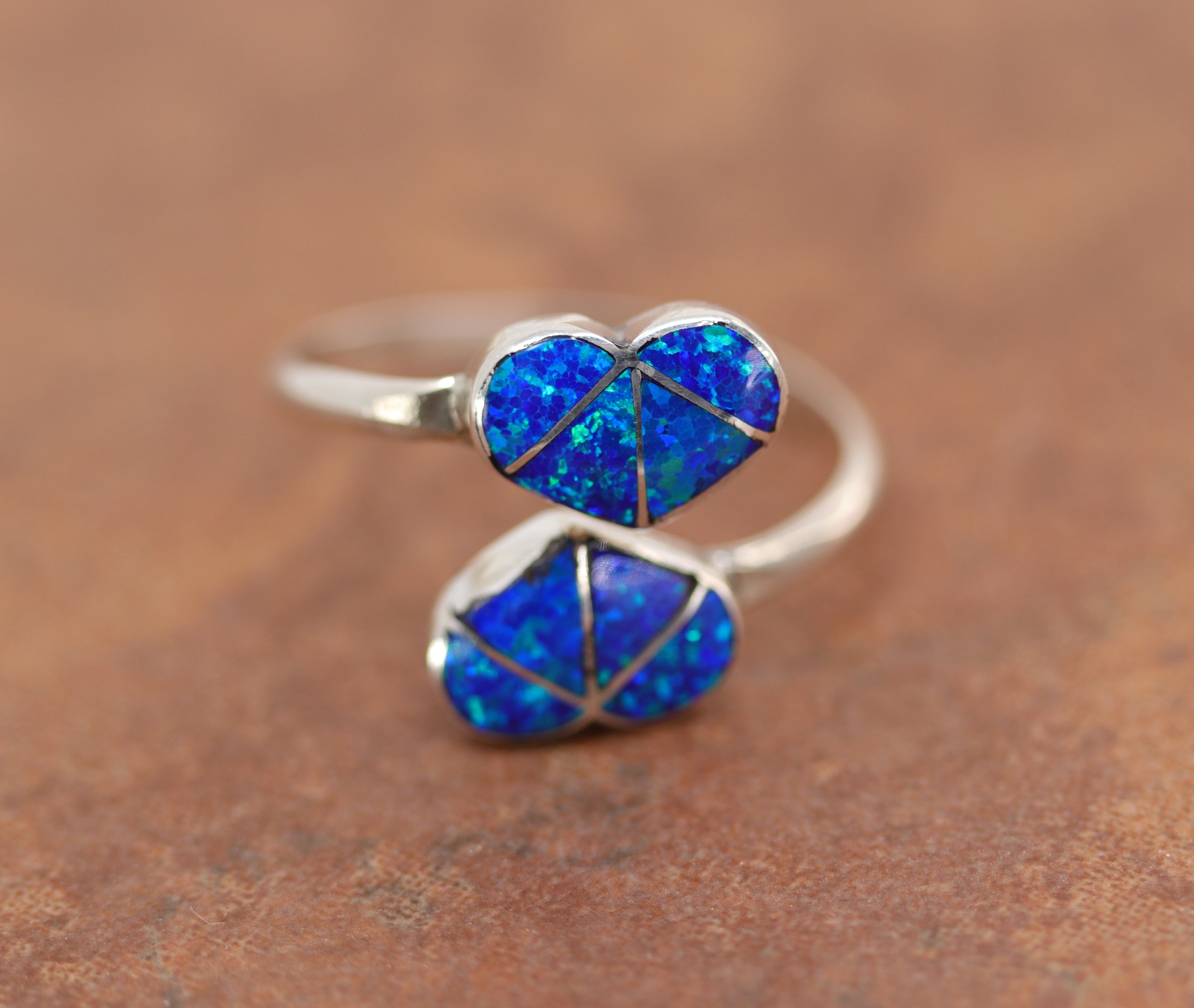 Sterling Silver ZuniCreated Opal Heart Spoon Ring Size 8-10