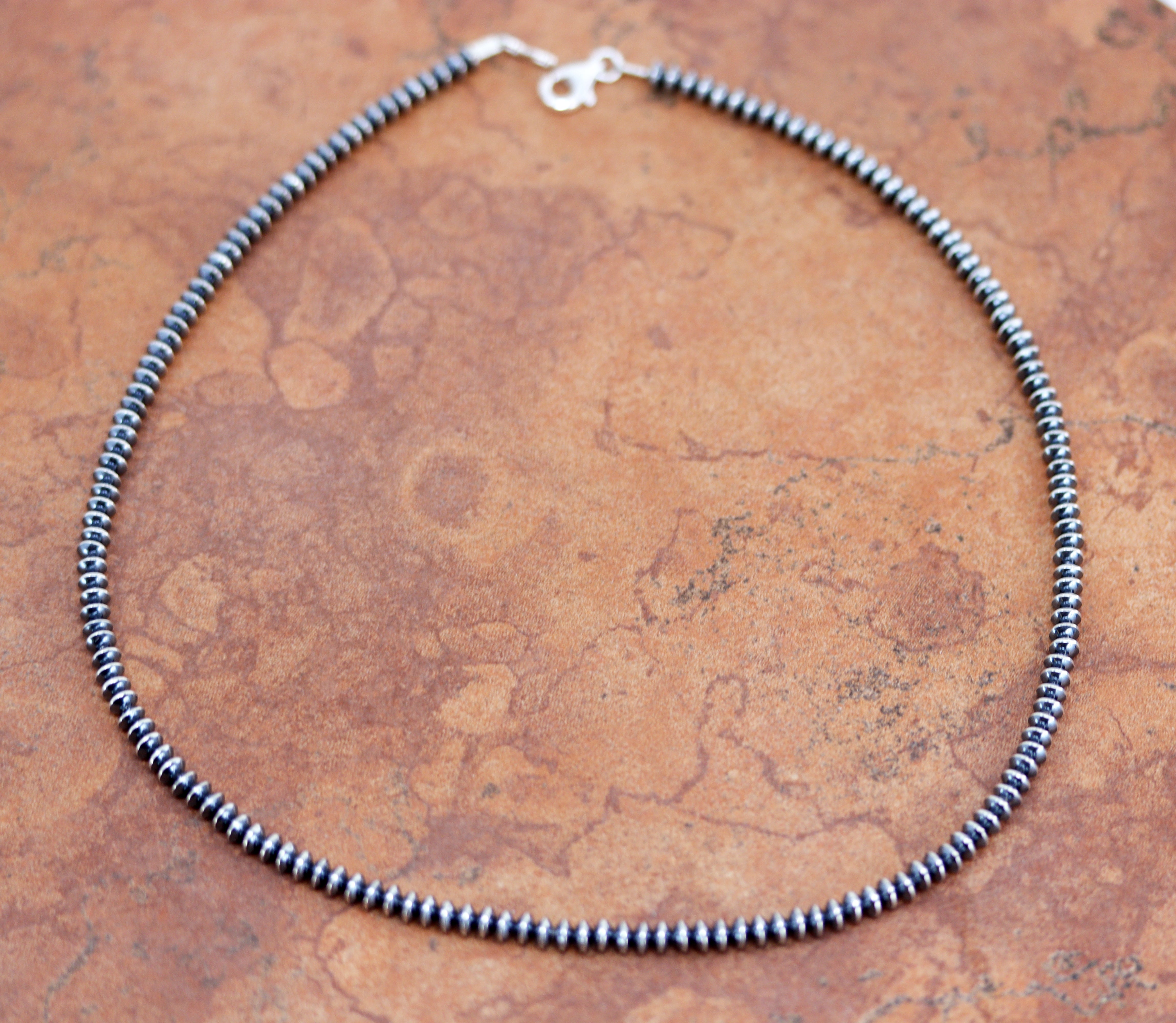 Navajo Pearl 20" 4mm Silver Rondelle Necklace