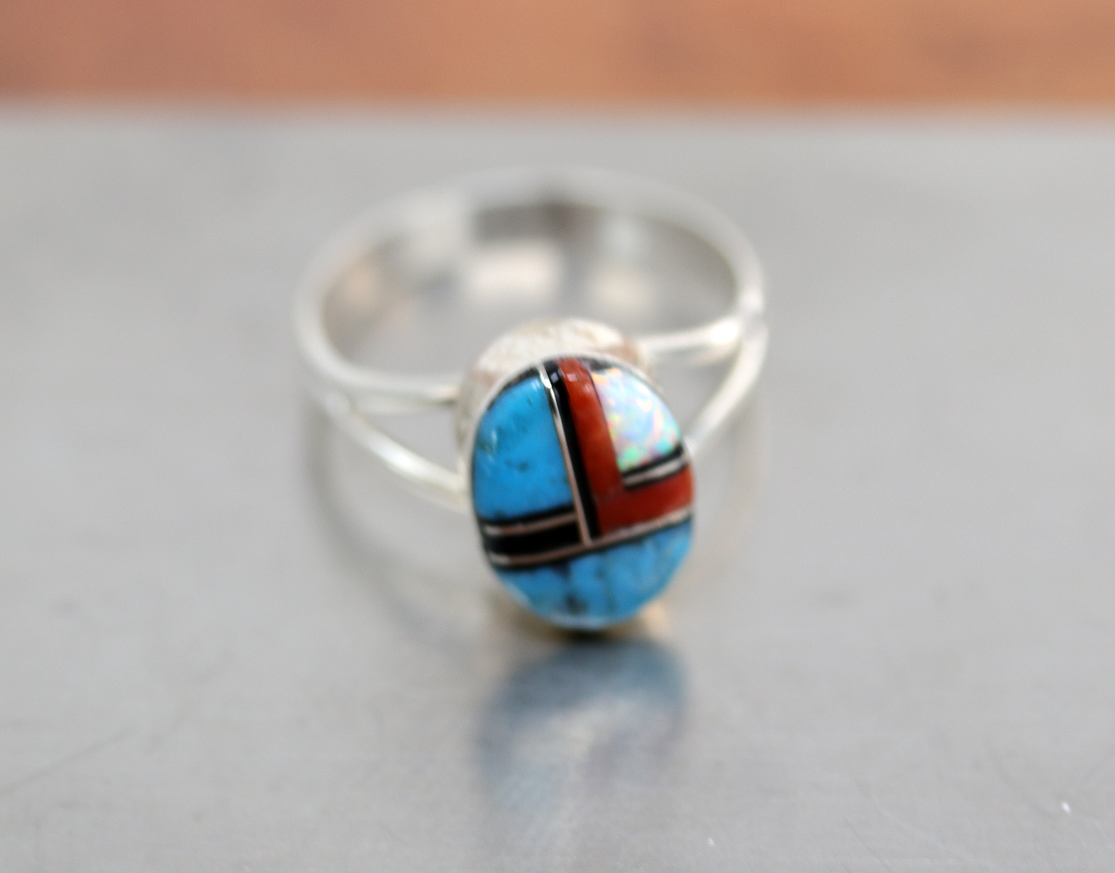 Sterling Silver Navajo Multi-Stone Ring Size 8