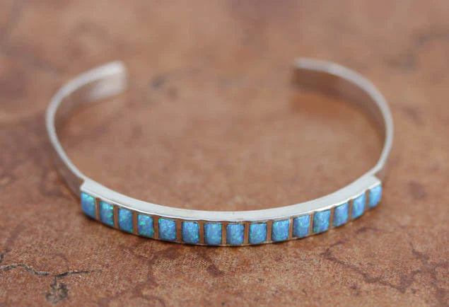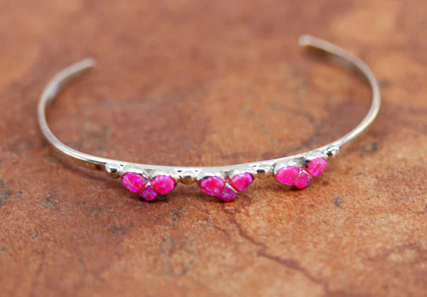 Sterling Silver Zuni Created Opal Heart Bracelet