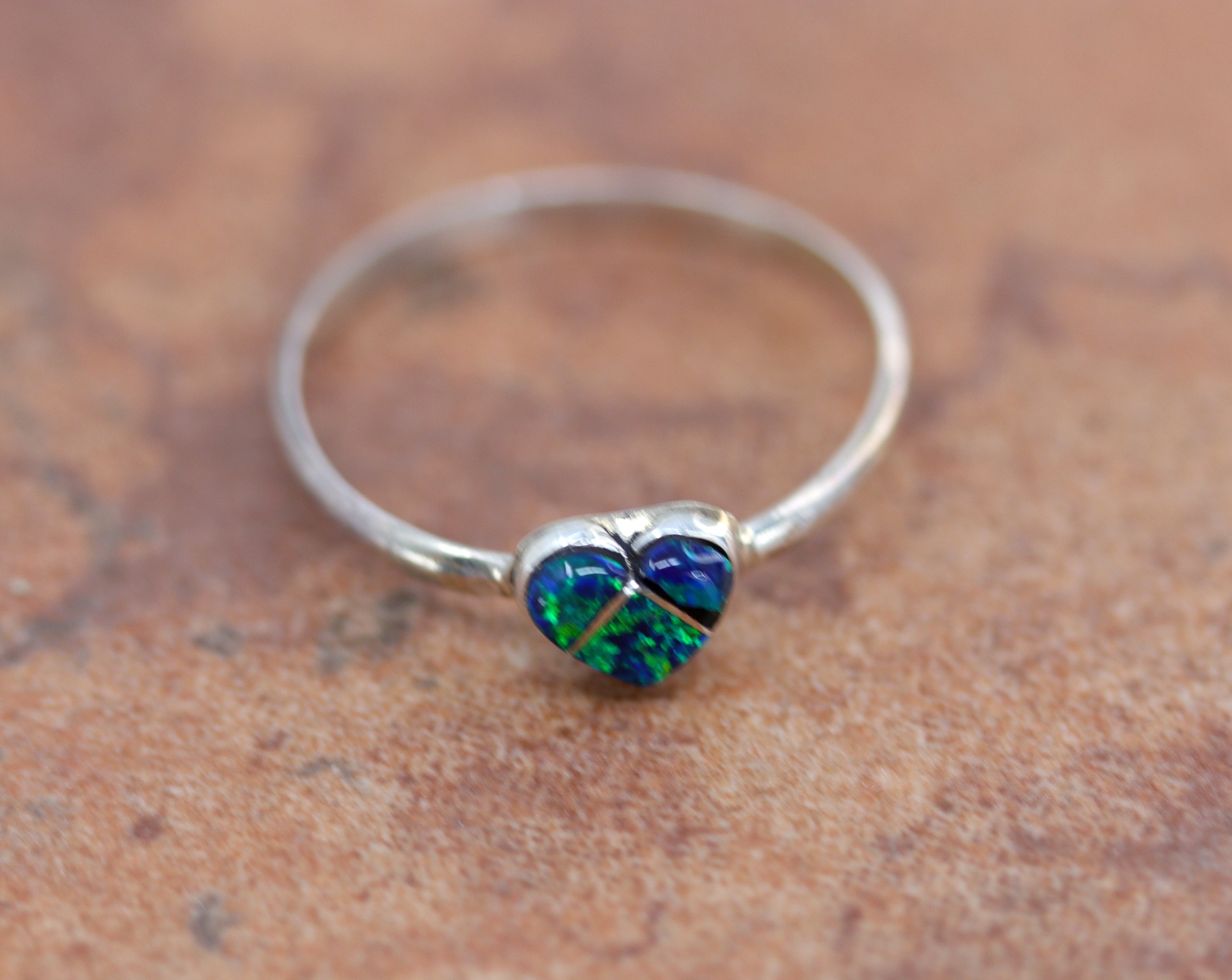 Sterling Silver Zuni Created Opal Heart Ring Size 5