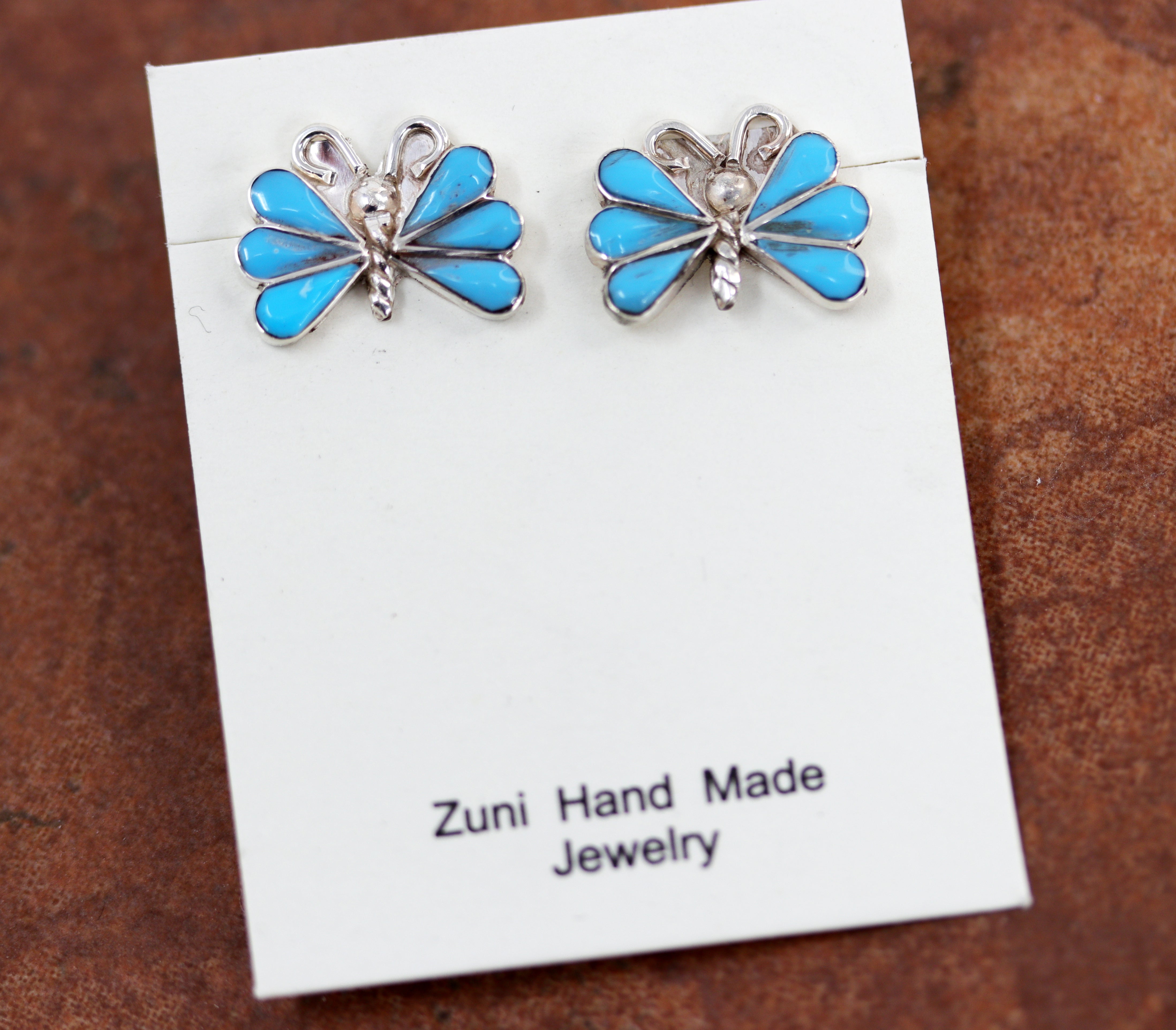 Sterling Silver Zuni Turquoise Butterfly Earrings