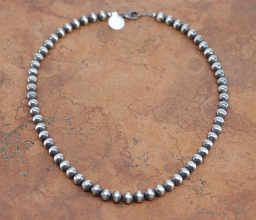 20" 8 mm Navajo Pearl Silver Beaded Necklace
